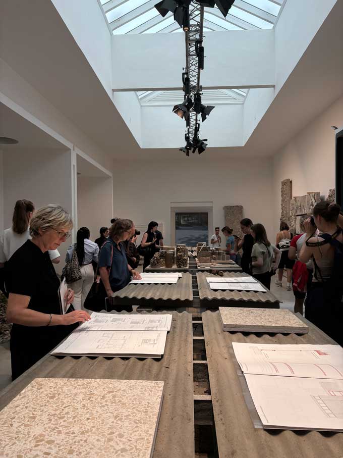 Im Fokus standen die Länderausstellungen in den Giardini und im Arsenale. Besonders eindrucksvoll war die Führung von Nicola Borgman durch die Ausstellung STRESSTEST im Deutschen Pavillon. Die Begleitausstellungen im Palazzo Mora, im Salone Verde oder Opera Aperta im Pavillon des Vatikans verdeutlichten nachhaltig, dass Architektur weniger als finales Produkt, sondern vielmehr als prozessuale Praxis zu verstehen ist – als fortlaufende Auseinandersetzung, in der Natur, Technik und gesellschaftliche Kontexte immer wieder neu miteinander verhandelt werden.