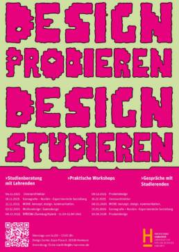 Komm vorbei und mach mit! Lerne die Studiengänge kennen und wage die ersten Schritte für deinen Einstieg ins Designstudium.