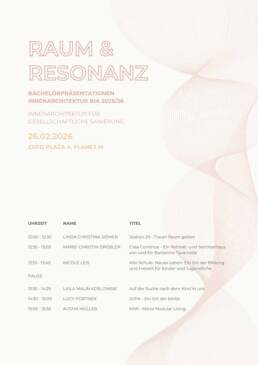 RAUM & RESONANZ – INNENARCHITEKTUR FÜR GESELLSCHAFTLICHE SANIERUNG Bachelorpräsentationen Teil 2 am 26. Februar 2026