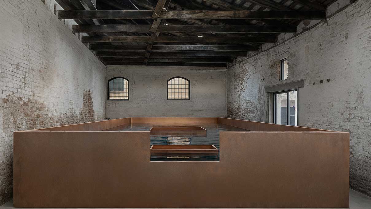 Im Salon Verde wird Venedigs mögliche Zukunft greifbar: Ein großes Wasserbecken zeigt den prognostizierten Pegelstand des Jahres 2075. Nur schmale, trockene Inseln bleiben begehbar. Zwischen Schutz und Bedrohung erleben Besucher:innen, wie vertrauter Boden verschwindet und Bewegungsräume schrumpfen – eine körperliche Erfahrung, die Emotionen weckt und zum Dialog über gemeinsame Lösungen einlädt.